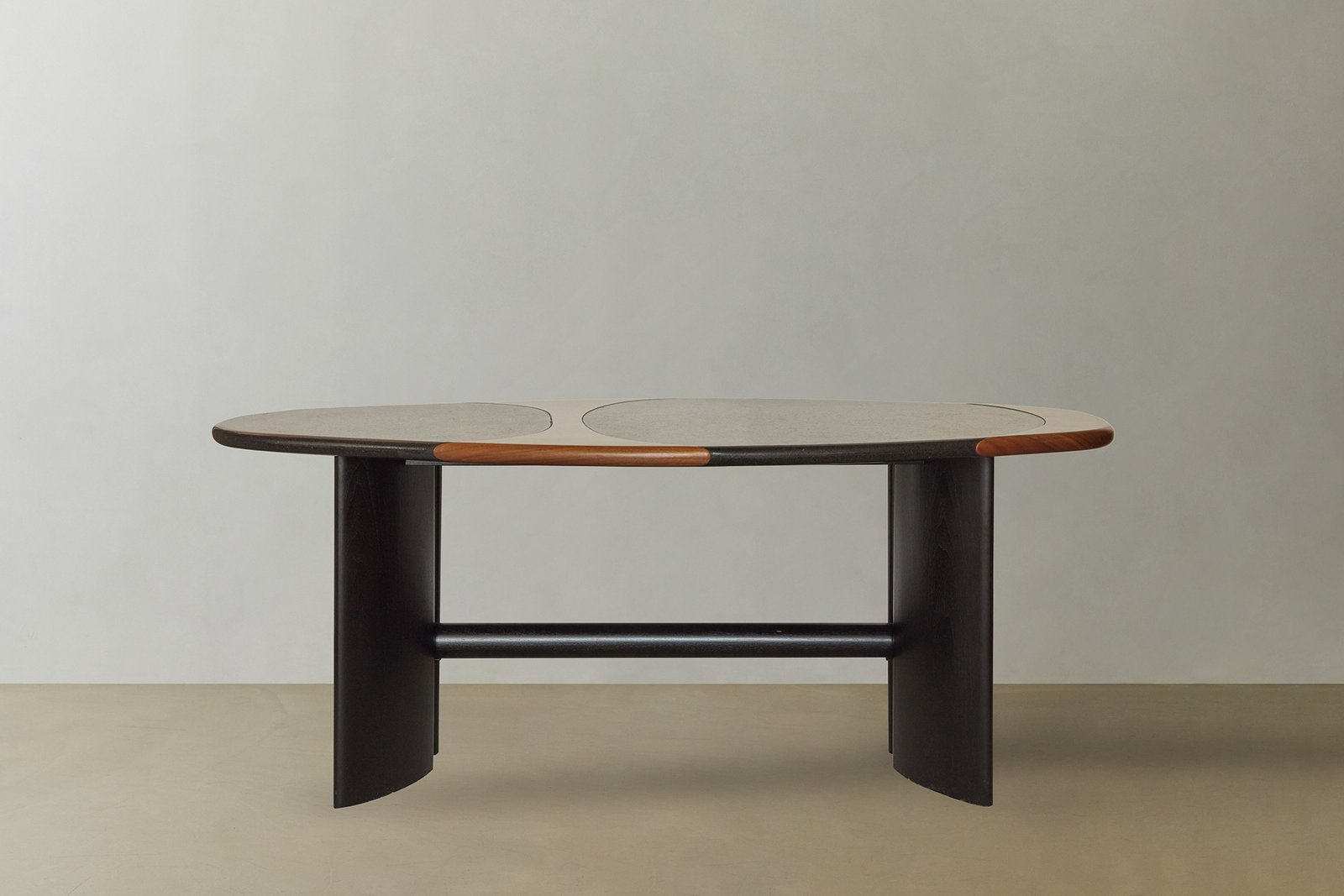 The dining table using wood and stone, the basic materials of Korean architecture, expressed its architectural seriousness at the same time through a new meeting of the two materials.Furniture with delicate crafting techniques in which the two materials are seamlessly united creates space inside, and the load-supporting bridge modernizes the fabrication techniques of old furniture.Feel the spirit of Eastern Edition’s exploration of the material’s physical properties and its essential beauty by adding deep beauty to the space through the stability of the table legs and the graphic expression of the top plate.